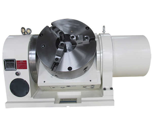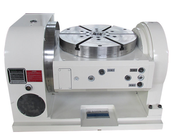 rotary table is constructed complete with an NC controllable rotary axis as well as an NC controllabletilting axis,and mainly used with CNC milling machine and machine center,It is controlled either by two-coordinatecontrol system of the main machine or by selfequipped two-coordinate control system.In combination with mainmachine,holes,slots,cam,curving line and surface in any angle position can be carried out precisely.Besides,it can alsobe used in common drilling,milling and boring machines,performing independently equal and unequal divisions.